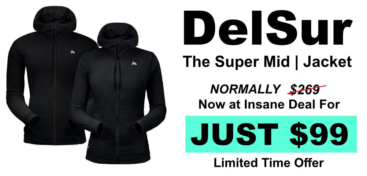 "It is the perfect combination of core insulation and breathability. As the temperature dropped into the 20's that night, I climbed into my SM NINOX flat lay hammock, complete with SM NINOX fly and SM underquilt while still sporting my DelSur. The breathability of the DelSur made for a comfortable nights sleep" - Ken F. | Montana